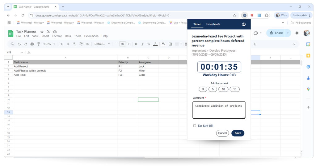 Solution: Instant timer switching between tasks keeps Workday up to date and prevents lost billable hours.